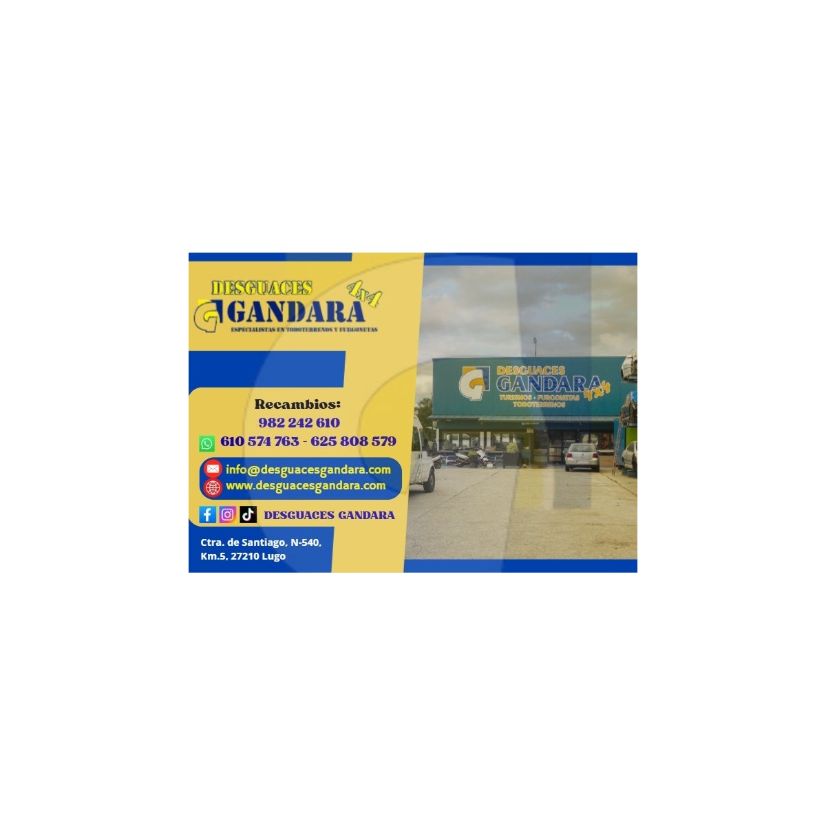 Desguaces Gándara solo vende a través de los números de teléfono: 982 242 610. Móvil: 610 574 763 - 625 808 579